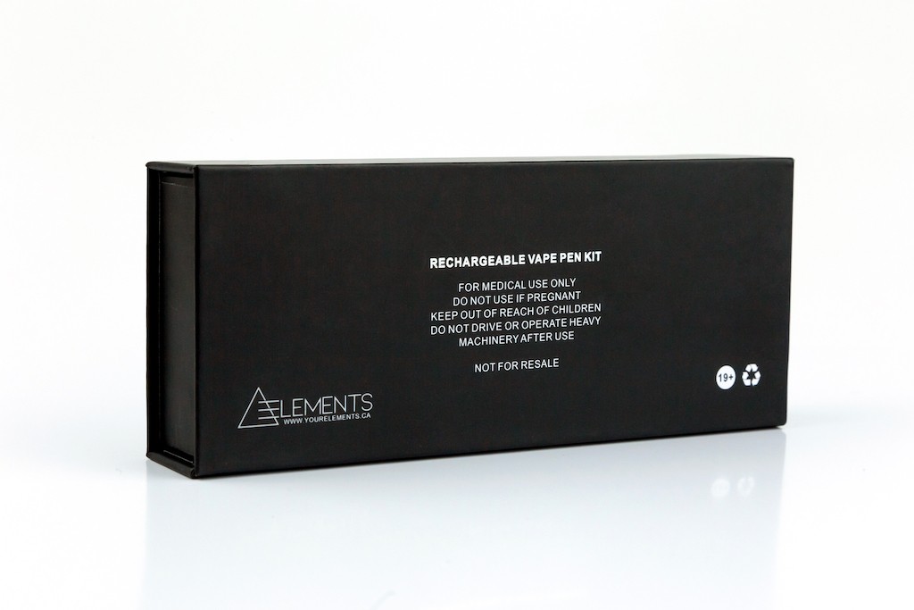 Elements cannabis vaporizer kits include a rechargeable battery, USB adaptor, and 0.5ml cartridge, all pre-charged and ready for use. Our vaporizers are sleek and designed for discretion.