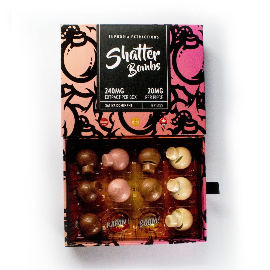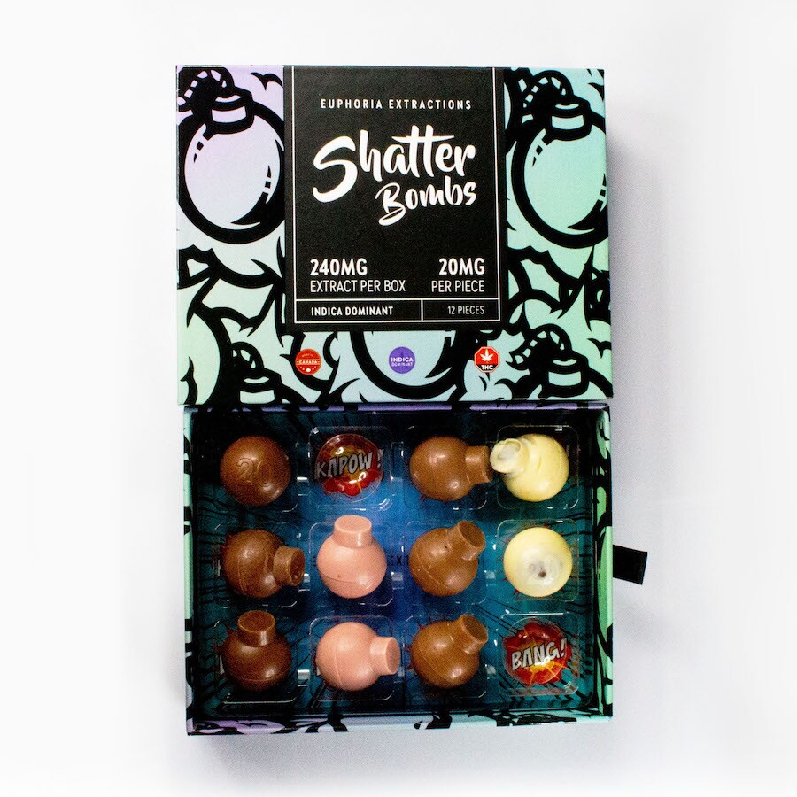 Buy Euphoria Extractions Shatter Bars 240mg and experience the perfect blend of flavor and potency. Euphoria Extractions Shatter Bombs are a popular option for cannabis lovers because they provide the ideal balance of flavor and intensity. Each of the twelve beautifully made delicacies in each packet contains 20 milligrams of premium THC.