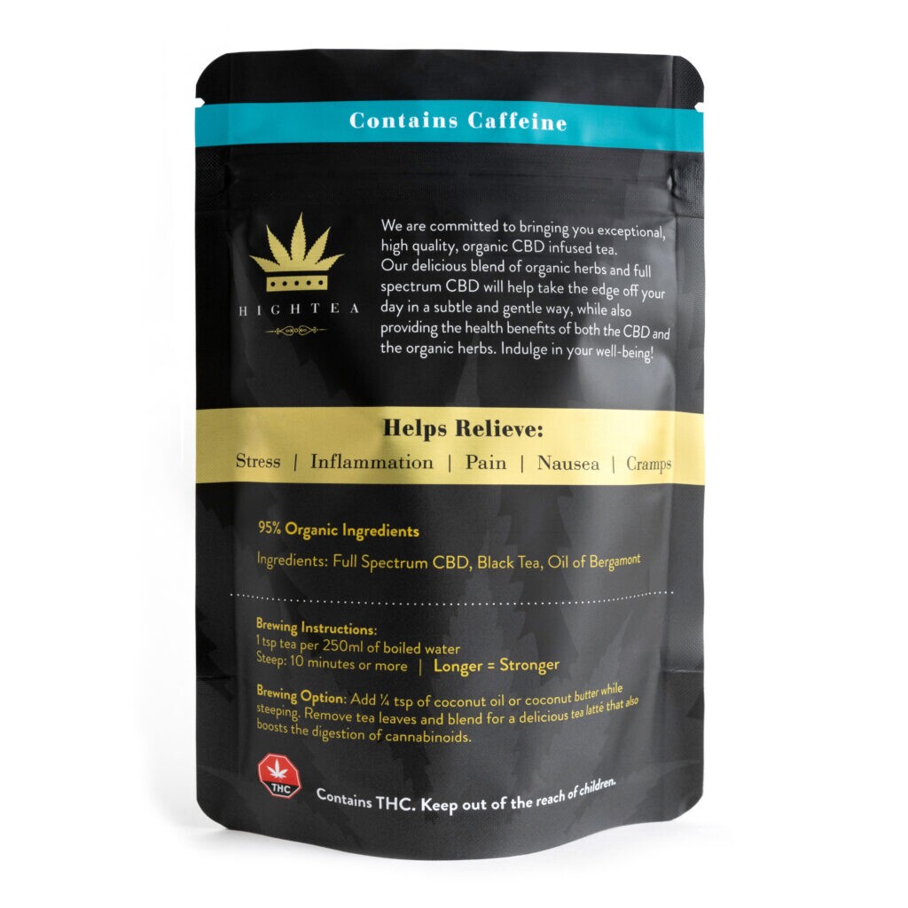 High tea earl of grey tea infused with CBD, similar to other High Tea varieties, is loose tea that you bag yourself. A single pack contains 10 teabags. Earl Grey tea is a black tea infused with bergamot, typically in the form of essential oil.