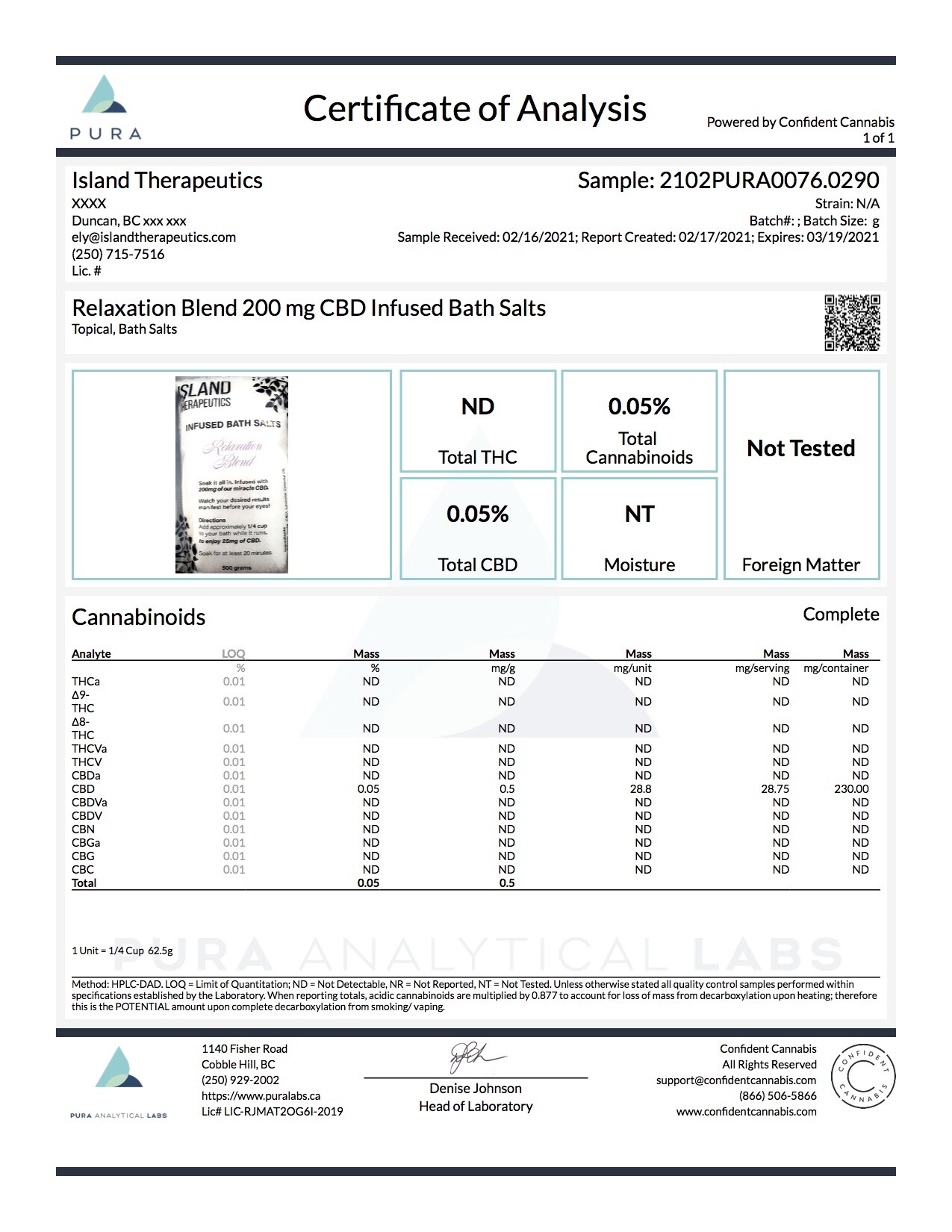 ISLAND THERAPEUTICS – CBD Bath Salts 200mg CBD