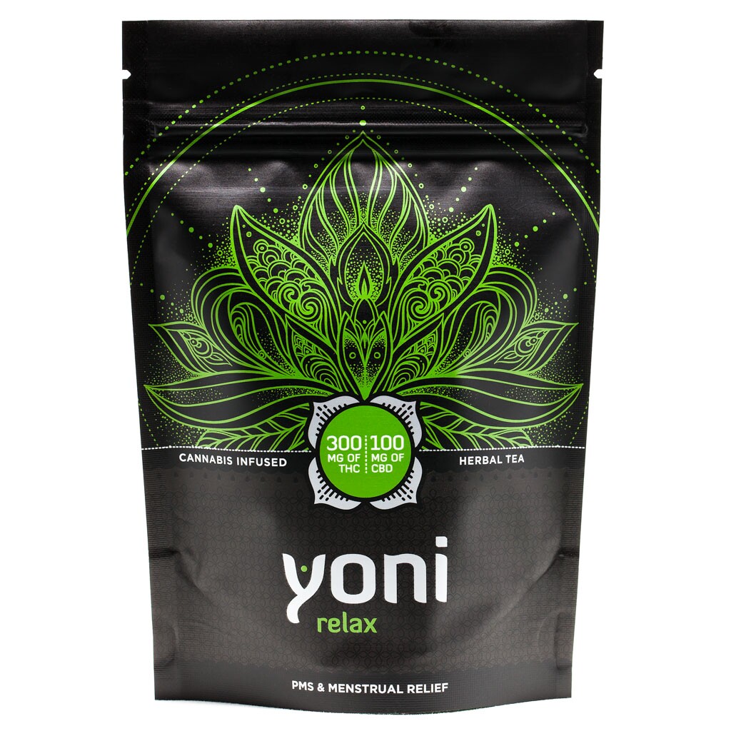 Yoni Relax Cannabis Infused Tea contains Organic Mint, Organic Orange Peel, Organic Nettle Leaf, Black Cohosh Root, Organic Cannabis, St. Johns Wort, Organic Ginger Root, Blue Corn Flowers, White Willow Bark, Organic Red Raspberry Leaf, Cramp Bark, Organic Hemp Tricombes, Organic Liquorice, and Organic Chamomile.