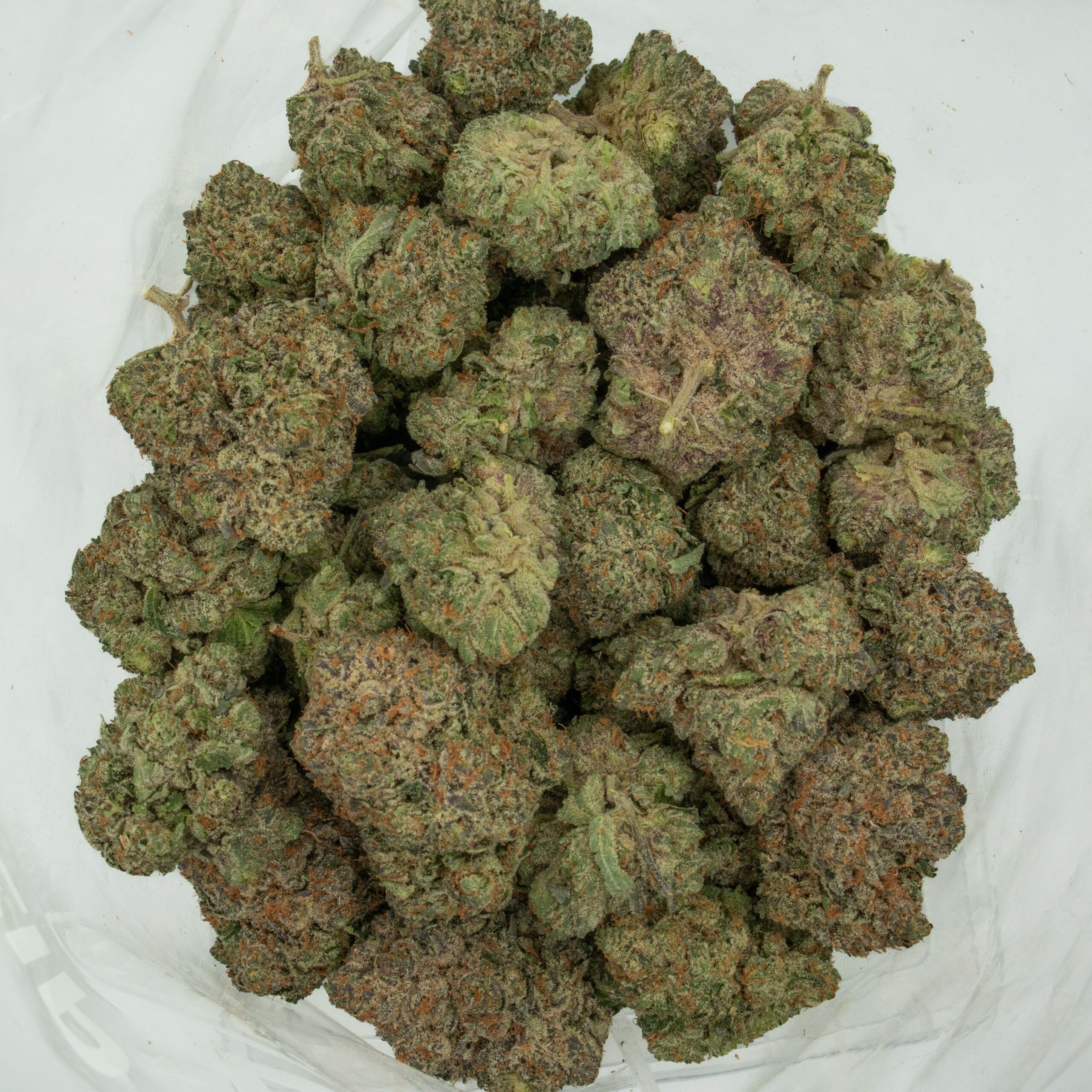 Dark olive leaves, a covering of icy white crystal trichomes, and sticky, grape-shaped forest green nugs covered in brownish-orange hairs make up the visually striking buds of Pinkman Goo. Pink Goo is a strain that works well for those seeking stress alleviation and those seeking a tasty, calming experience.