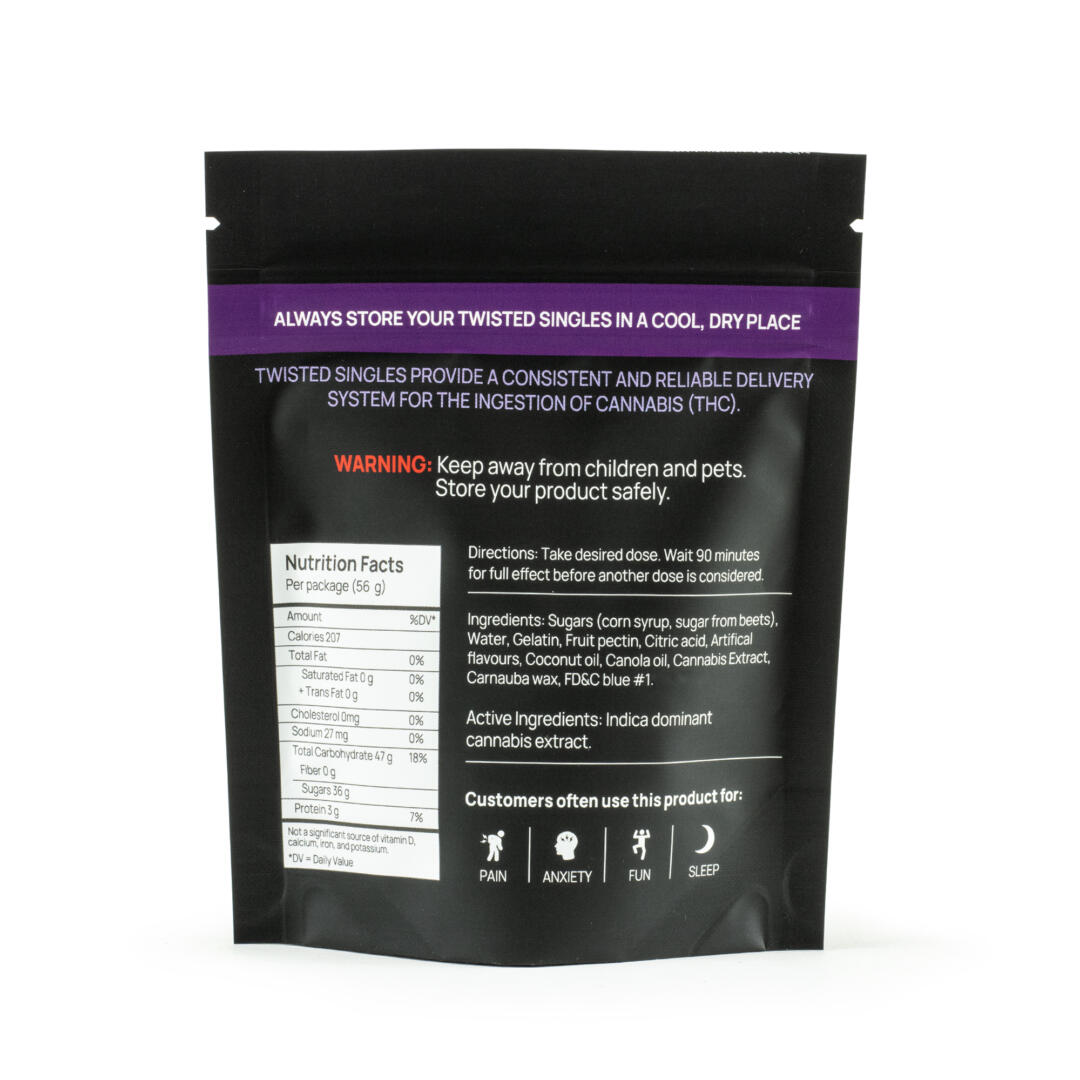 TWISTED SINGLES – Sour Blue Raspberry Indica (160mg)